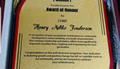 His Royal Highness Chief Ndiko Fonderson Henry, is the 3rd class ruler of Meveo Me Mbenge village, the last village in Limbe I sub-division, Fako Division of the Southwest Region of Cameroon. He is also a business man and the founding chairman of the organizing committee of the Meveo Cultural and Development Assembly dubbed MEVCUDA.